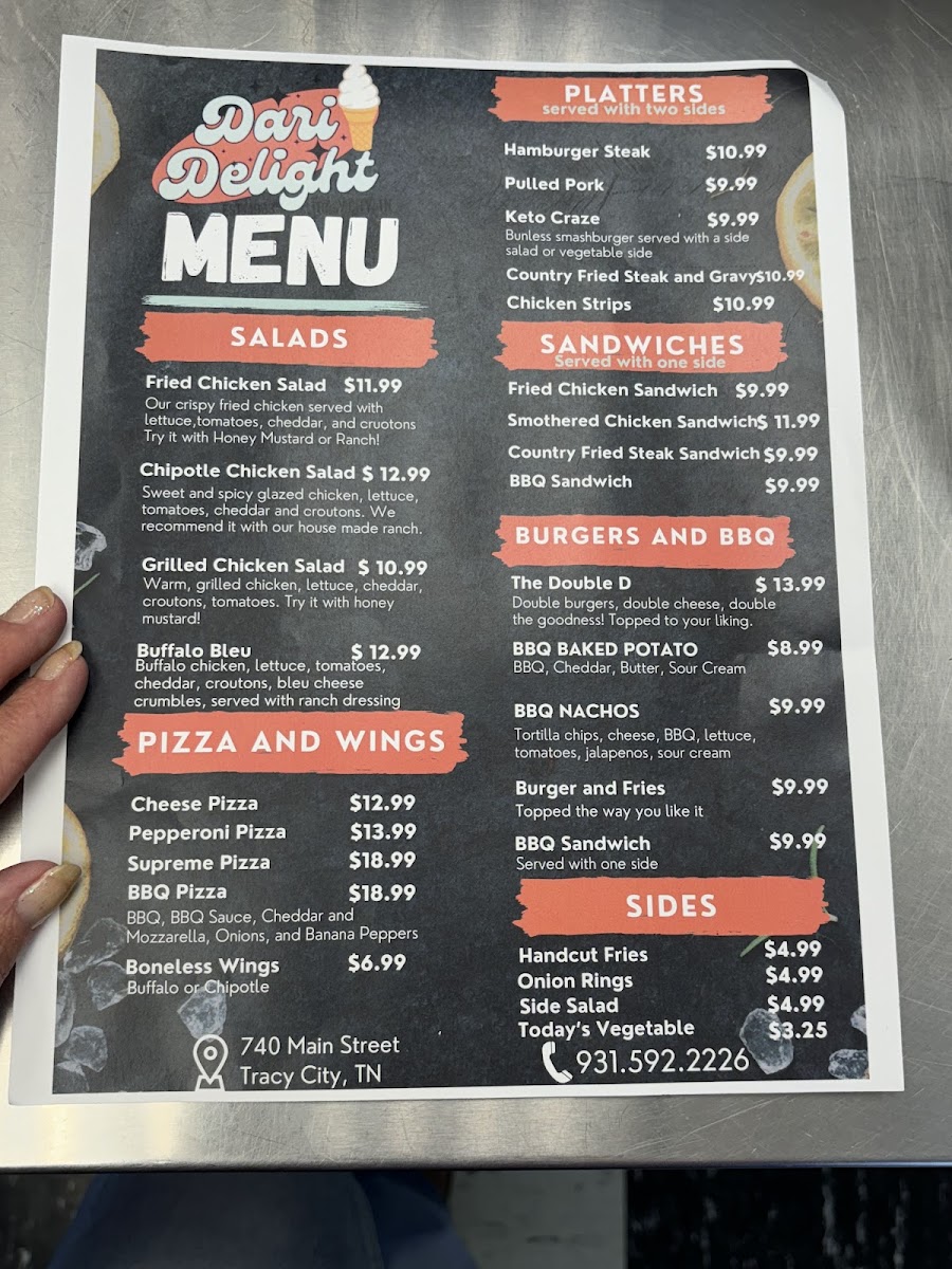 Welcome to Dari - Delight, a culinary gem nestled at 740 Main St, Tracy City, TN. This vibrant eatery invites you to indulge in a diverse menu that caters to every craving. From classic Cheese Pizza at just $12.99 to the bold flavors of the Sweet Heat Pizza featuring grilled chicken and chipotle for $19.99, there's something for everyone.
